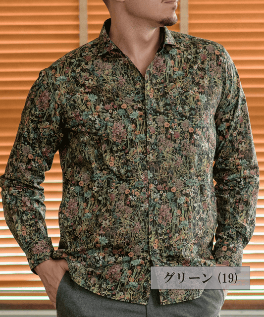 VUMPS RED LIBERTYフラワープリント セミワイドカラーシャツ