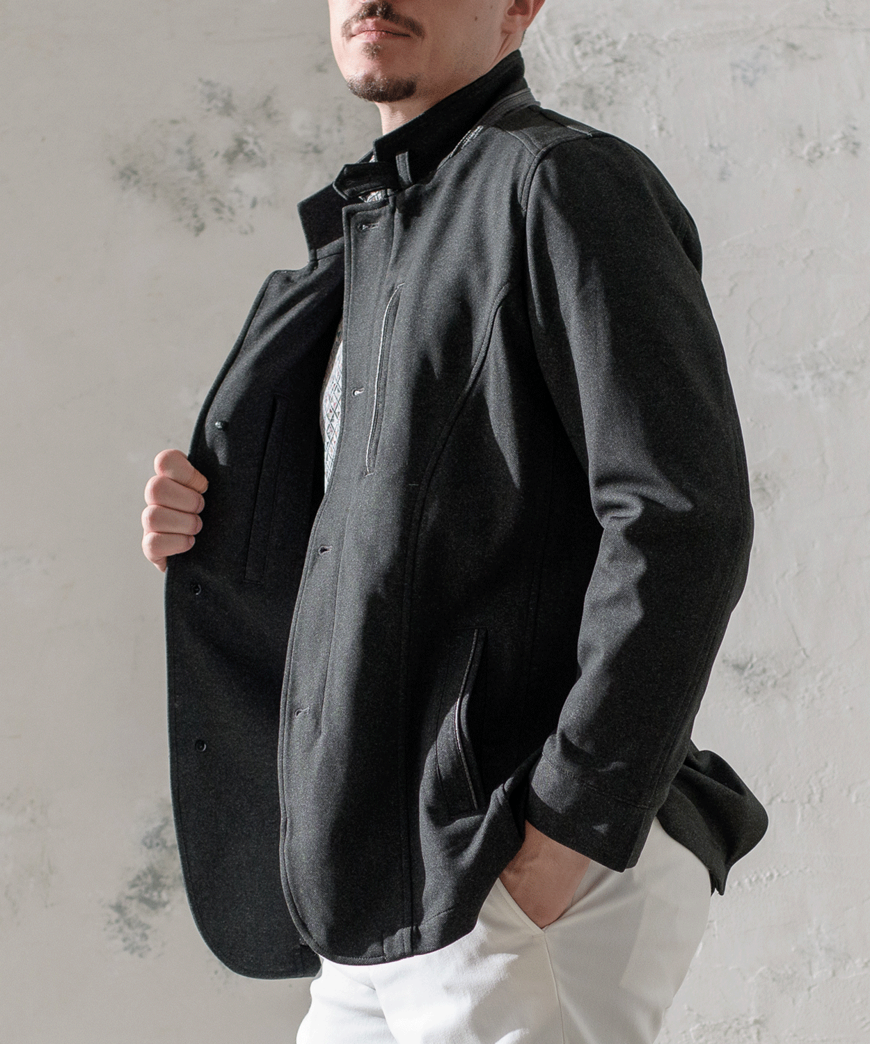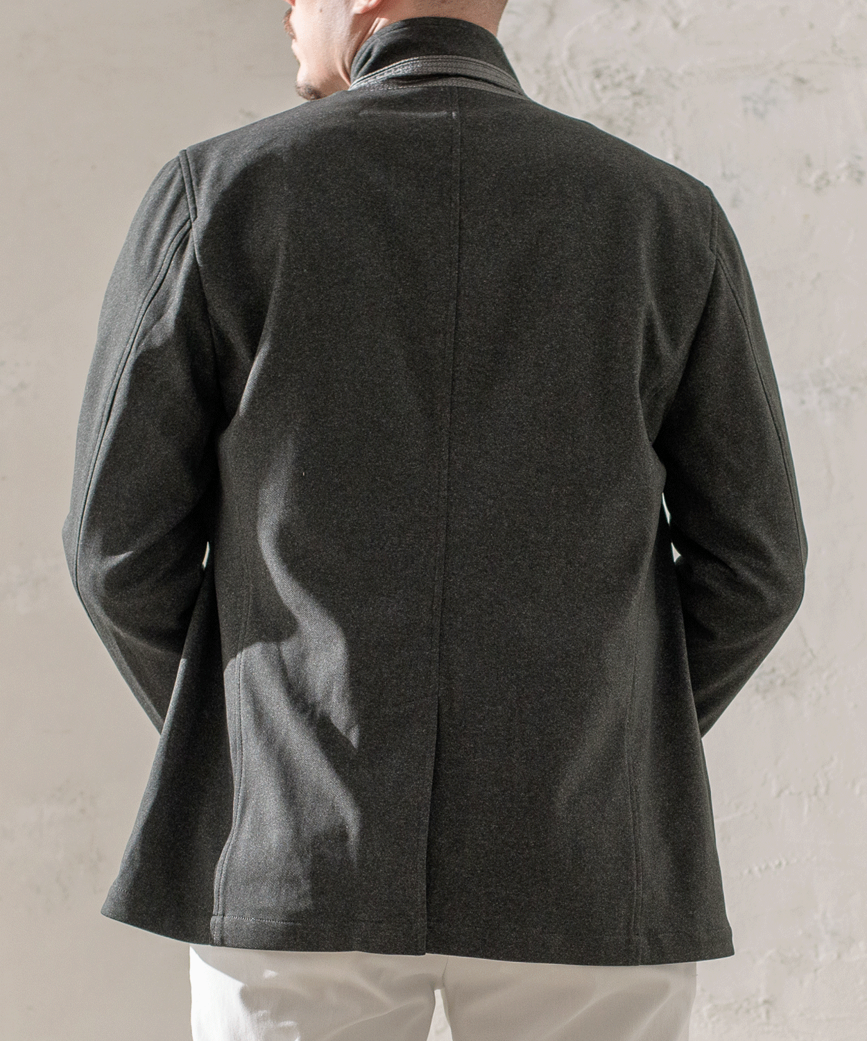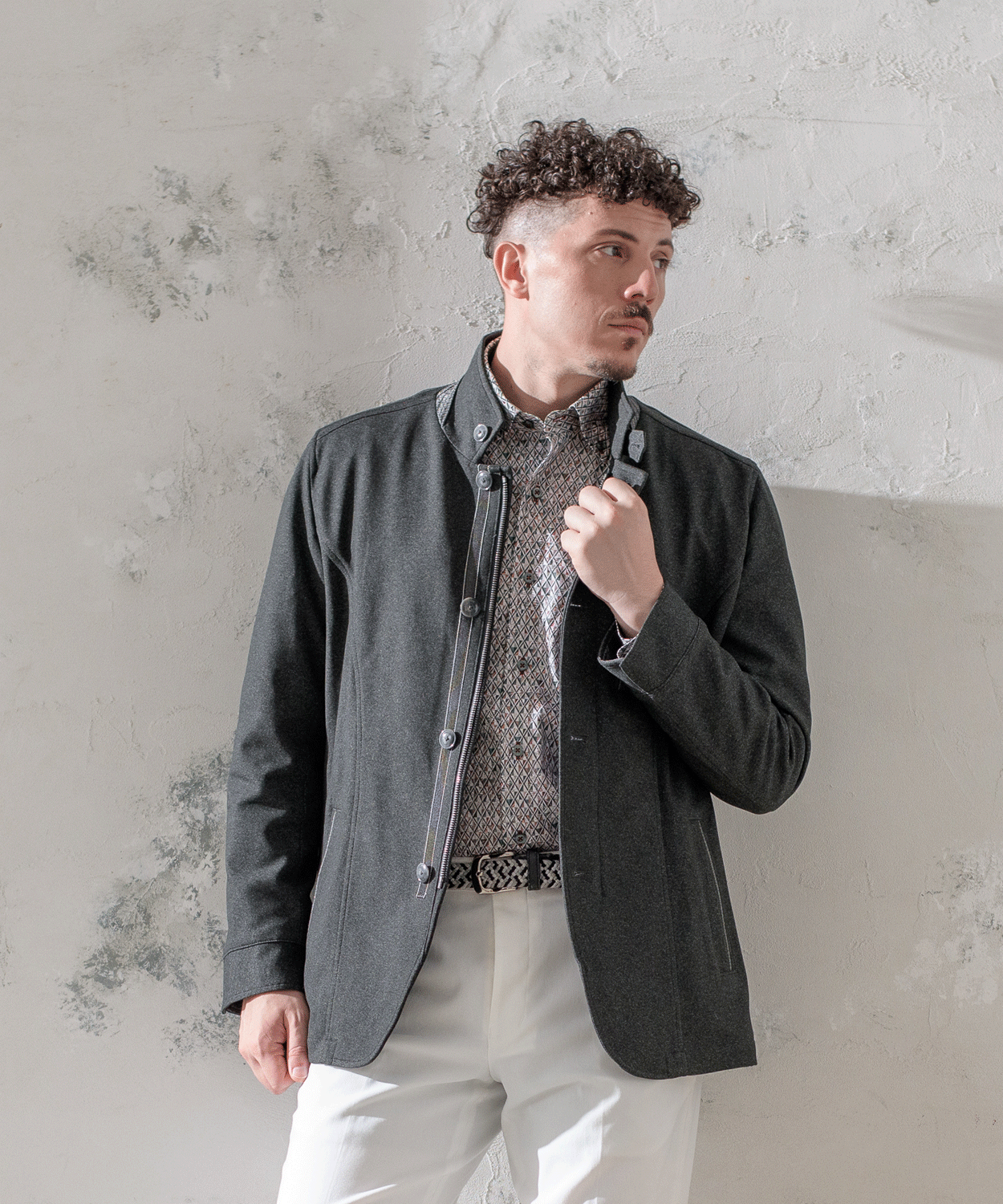 ストレッチ性のある2種類のポリエステル糸を交編することで、軽やかさと膨らみのある風合いを両立させたコンバーチブルジャケットです。