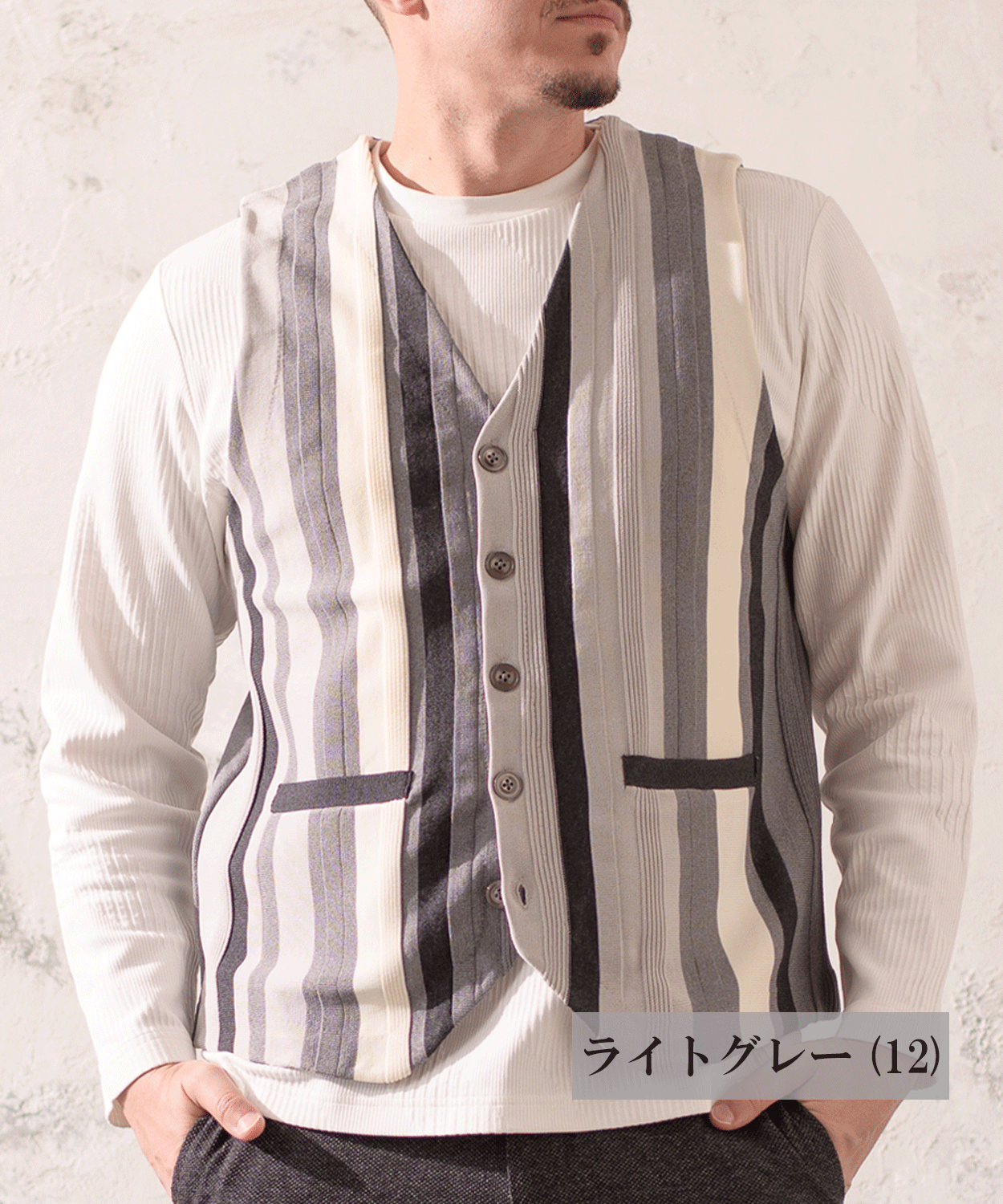 12Gストライプニット 異素材ベスト