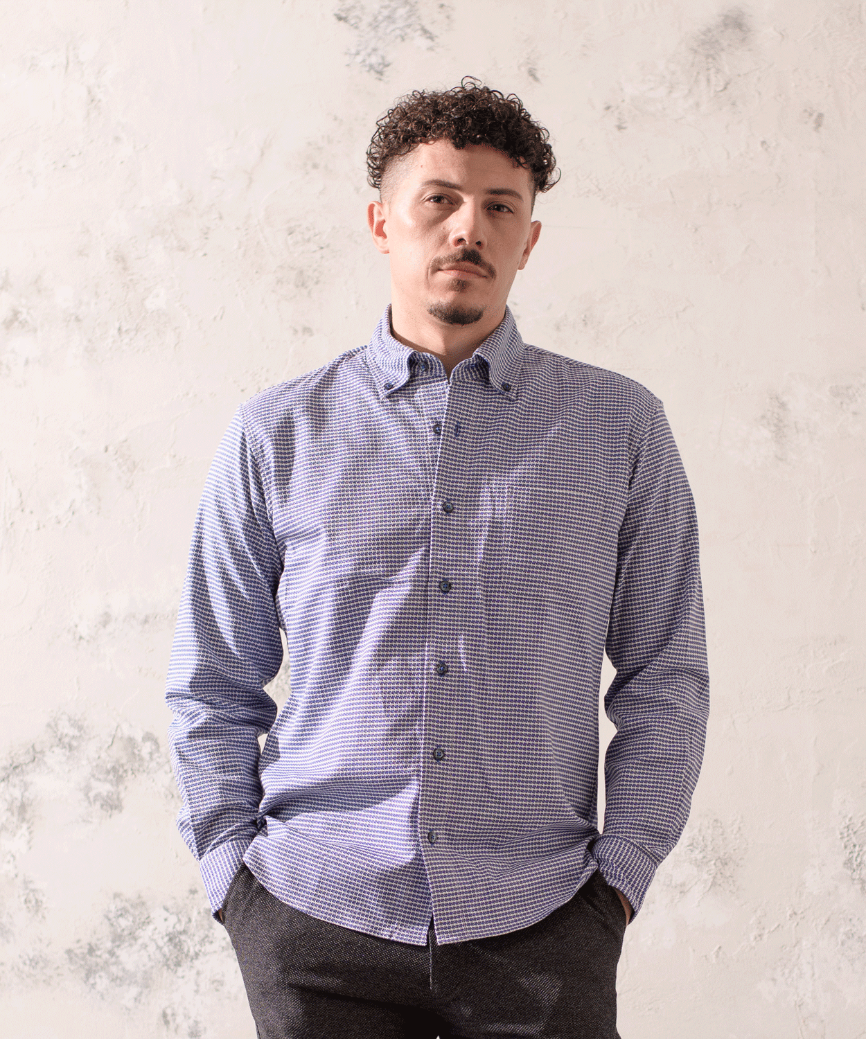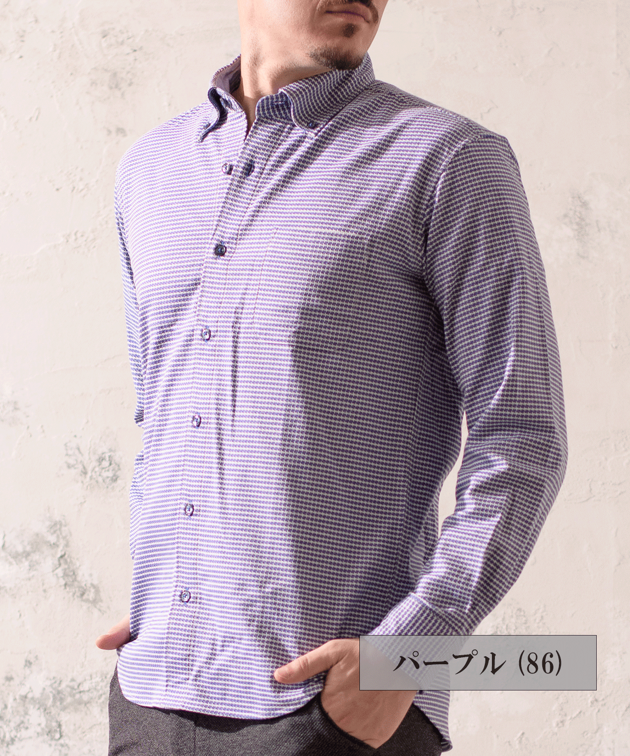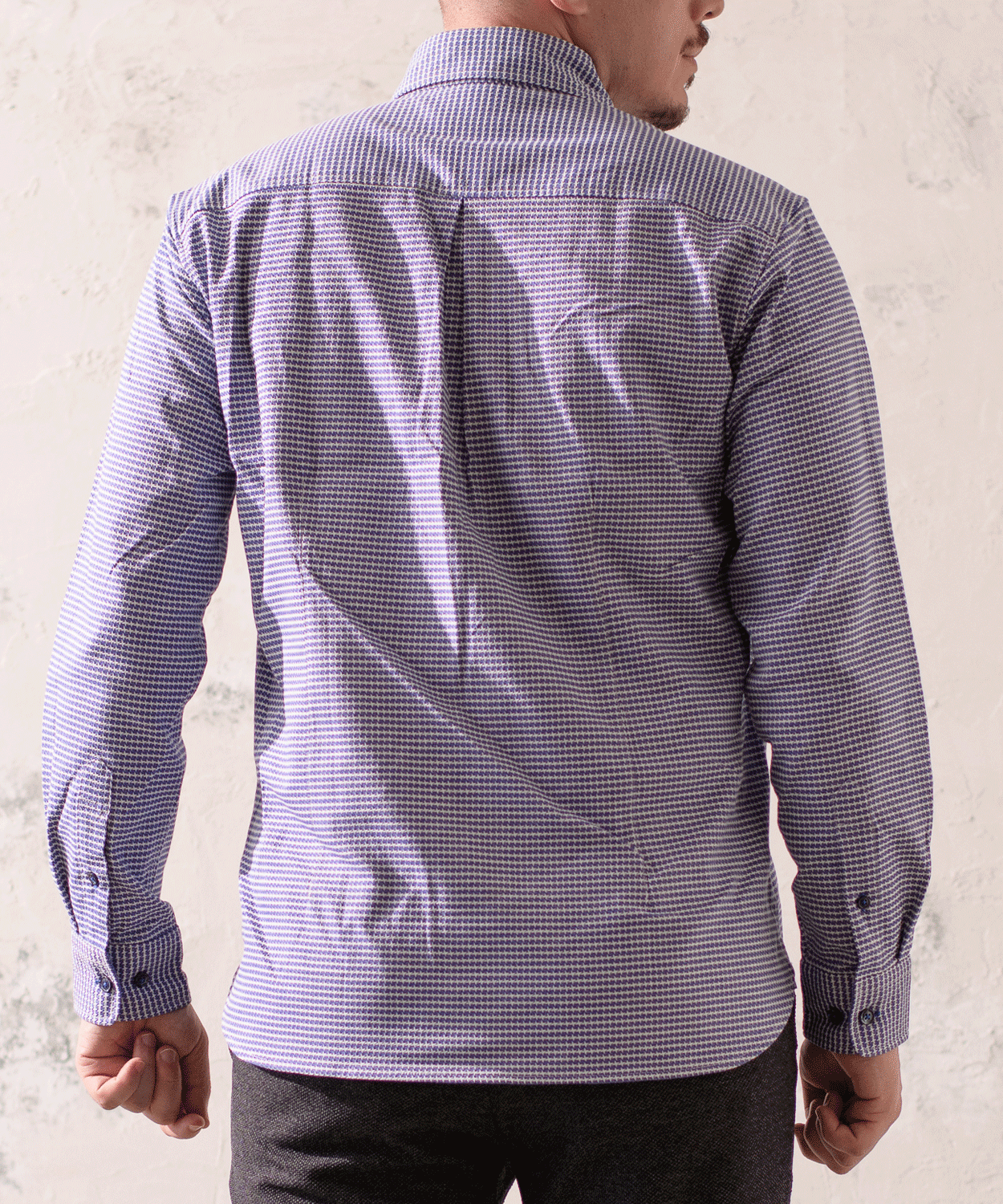 小さな星柄をドビー組織で織り上げた、遠目無地ライクなカジュアルシャツです。