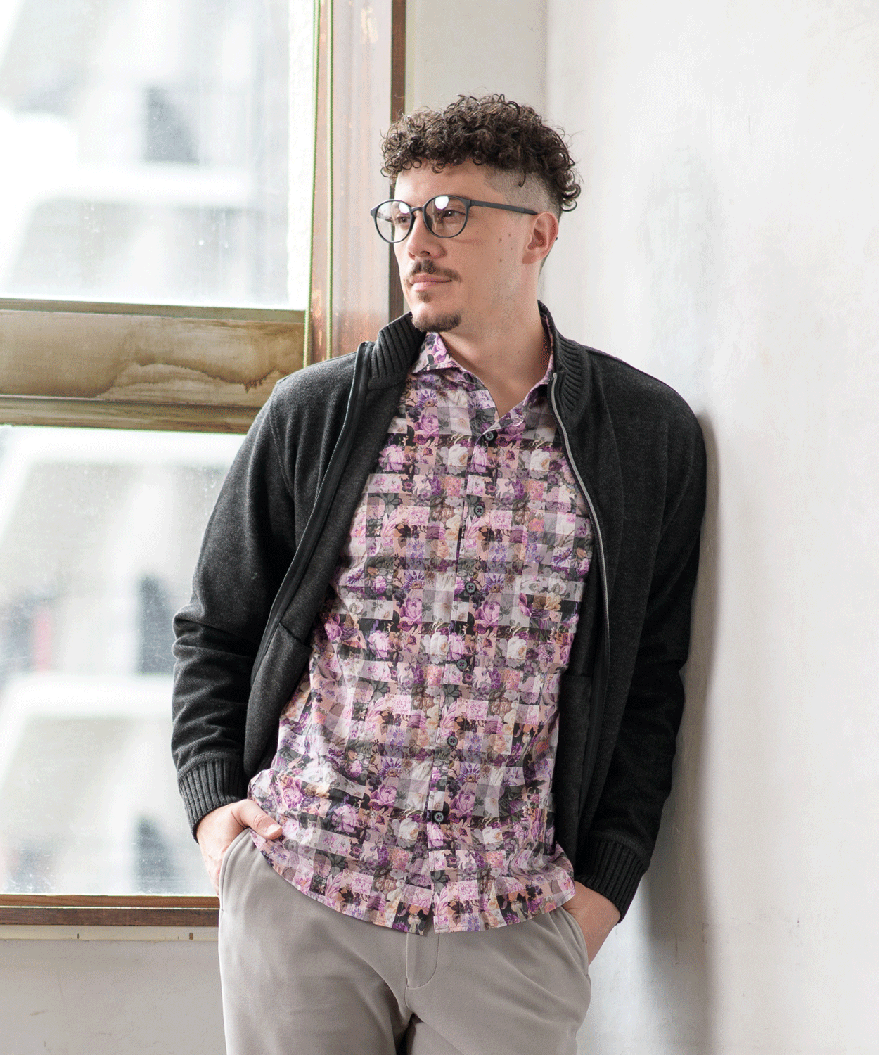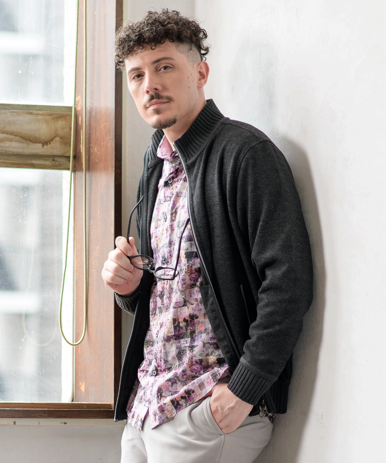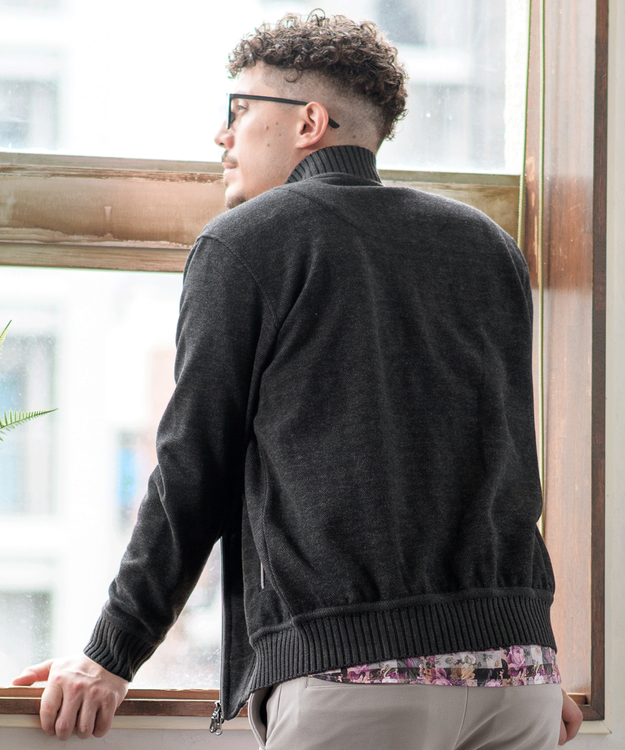 へリンボンジャカード フルジップカーディガン